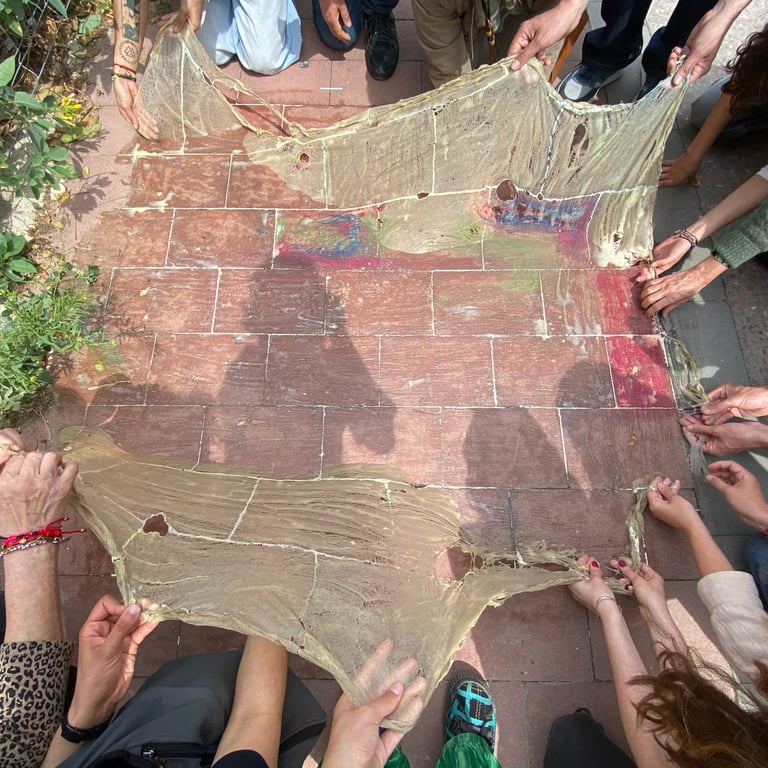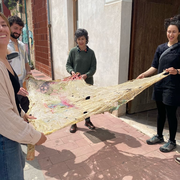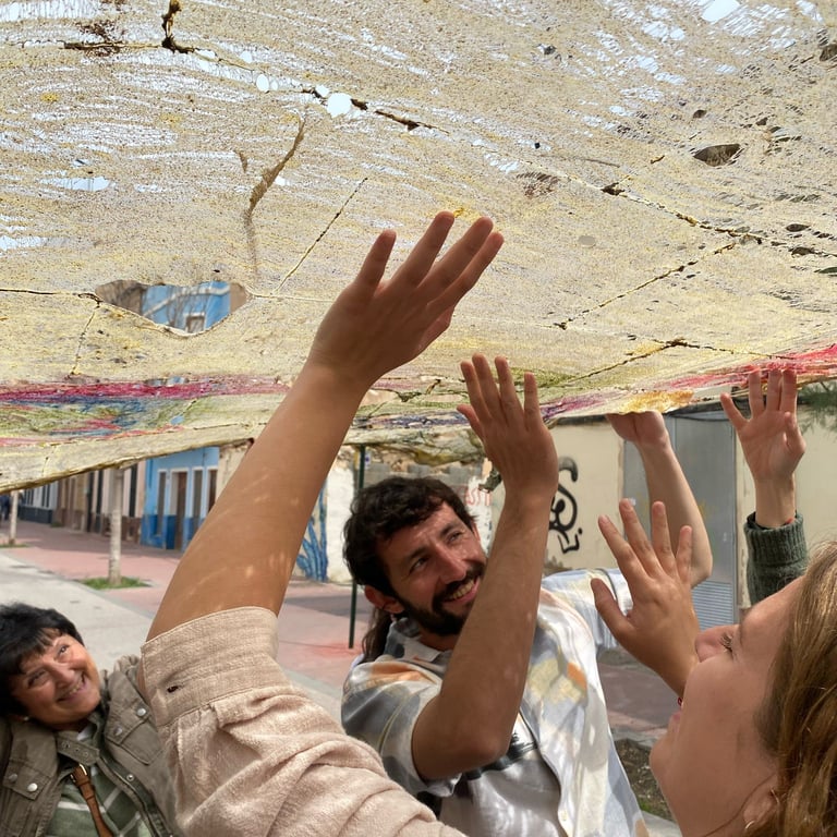 Estirar la piel es una intervención participativa para transformar nuestra experiencia individual en el espacio urbano en gestos colectivos. El objetivo de esta intervención es explorar nuestras sensaciones en determinados lugares, comparar estas impresiones y transformarlas colectivamente. Para ello, probaremos diferentes técnicas artísticas para sensibilizar nuestros cuerpos y explorar el espacio urbano. Estiremos la piel de nuestro barrio y de nuestra ciudad.